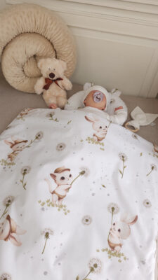 Komplet idealny do łóżeczka, bez ubierania poszewek. Doskonale sprawdzi się również do wózka, na pikniku czy do zabaw w ogrodzie. Lekkie i miękkie wypełnienie antyalergiczne, które dorównuje miękkością naturalnemu puchowi oraz dobrze przepuszcza powietrze, zapewnia wyjątkowy komfort snu. Przeciwdziała osadzaniu się roztoczy i kurzu. Mięciutka, milutka i cieplutka kołderka doskonale sprawdzi się jako towarzysz drzemki, utuli dziecko do snu.