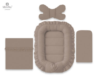 4 ELEMENTOWY ZESTAW KOLEKCJA ROYAL: KOKON NIEMOWLĘCY, MATERACYK, KOŁDERKA + PODUSZECZKA MOTYLEK - BAWEŁNA 100% MOKKA