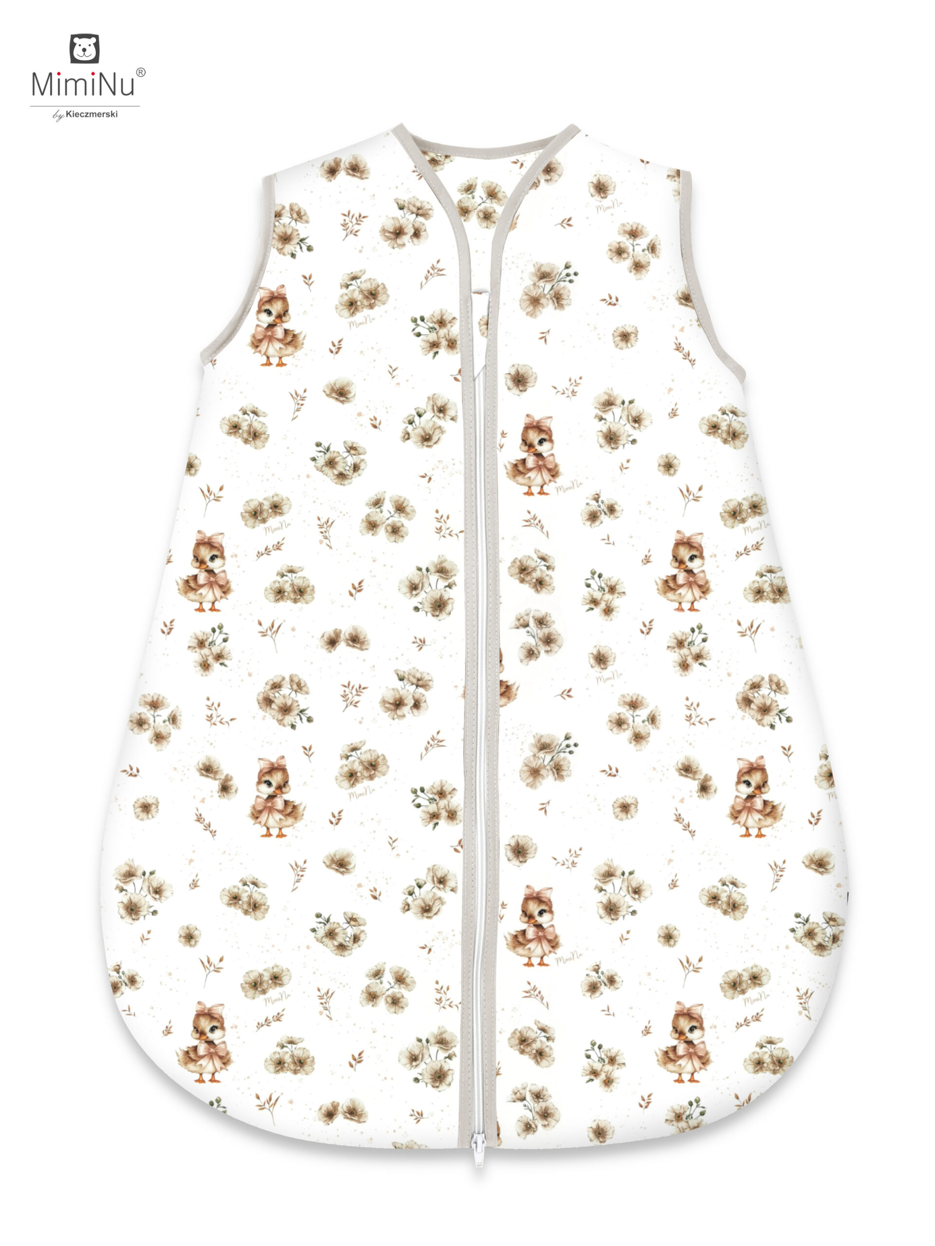 ŚPIWOREK AVI CAŁOROCZNY ROZMIAR 74CM, BAWEŁNA 100% MIMINU DESIGN KACZUSZKI BEŻ