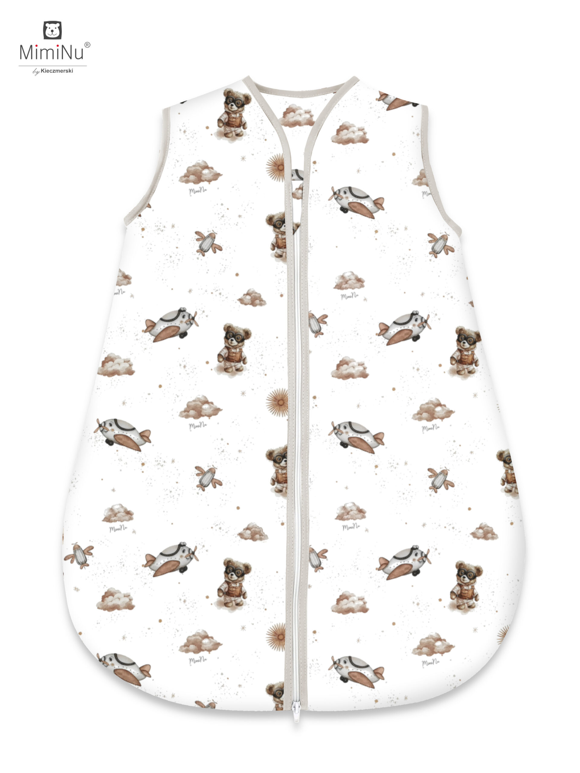 ŚPIWOREK AVI CAŁOROCZNY ROZMIAR 74CM, BAWEŁNA 100% MIMINU DESIGN MISIE BEŻ