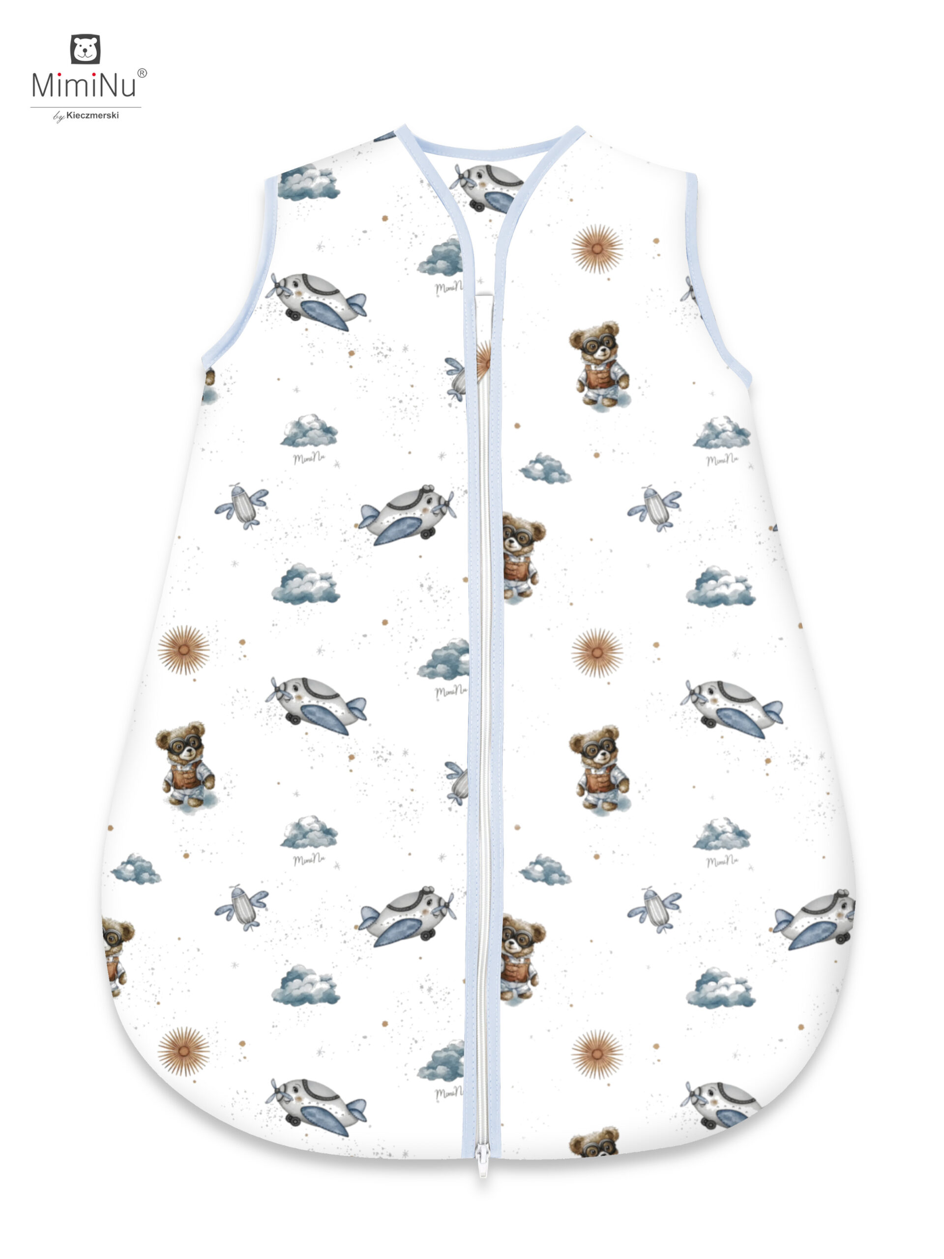 ŚPIWOREK AVI CAŁOROCZNY ROZMIAR 74CM, BAWEŁNA 100% MIMINU DESIGN MISIE BŁĘKIT