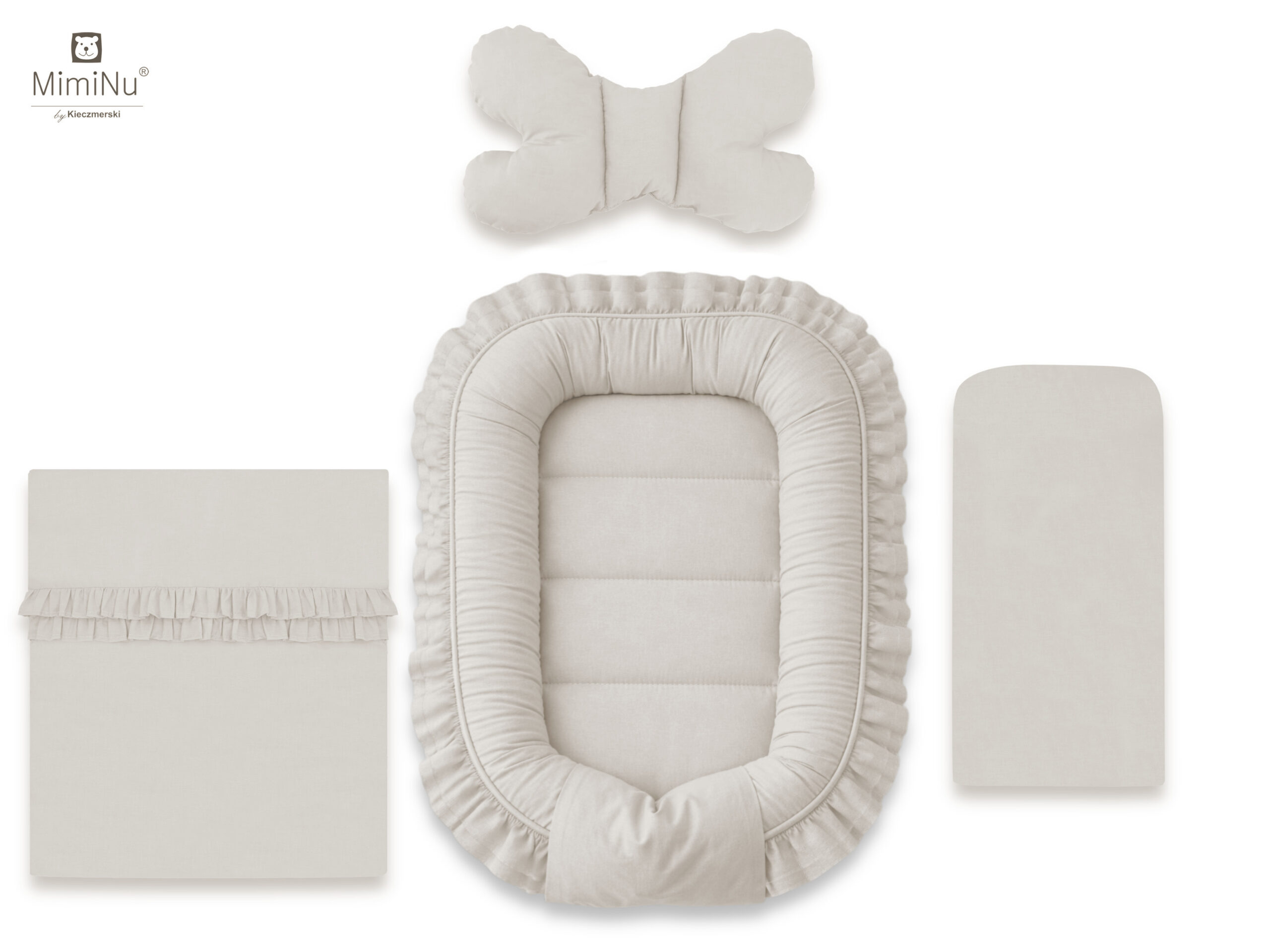 4 ELEMENTOWY ZESTAW KOLEKCJA ROYAL: KOKON NIEMOWLĘCY, MATERACYK, KOŁDERKA + PODUSZECZKA MOTYLEK - BAWEŁNA 100% BEŻ
