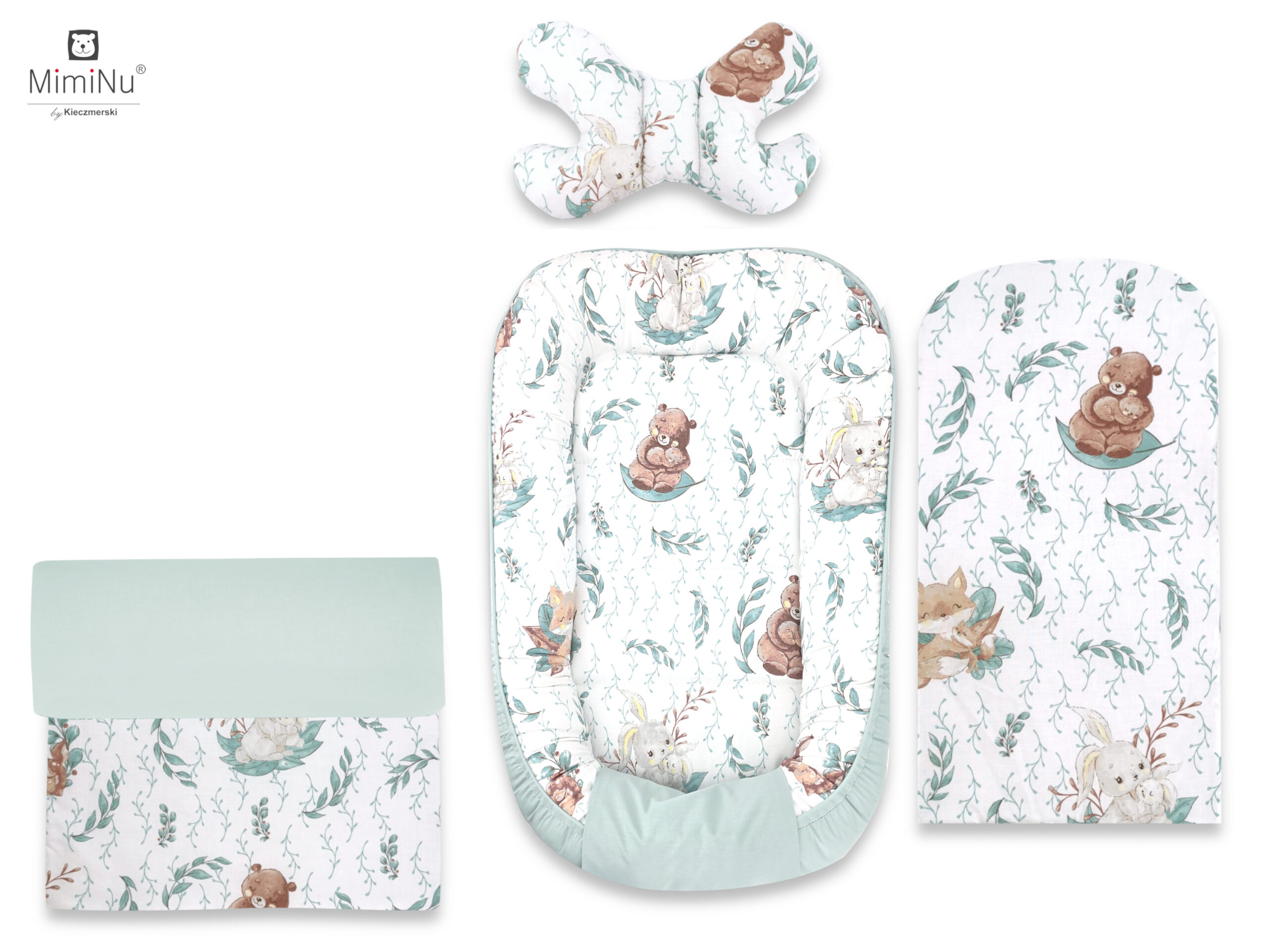 4 ELEMENTOWY ZESTAW: KOKON NIEMOWLĘCY, MATERACYK, KOŁDERKA + PODUSZECZKA MOTYLEK - BAWEŁNA 100% LULU NATURAL