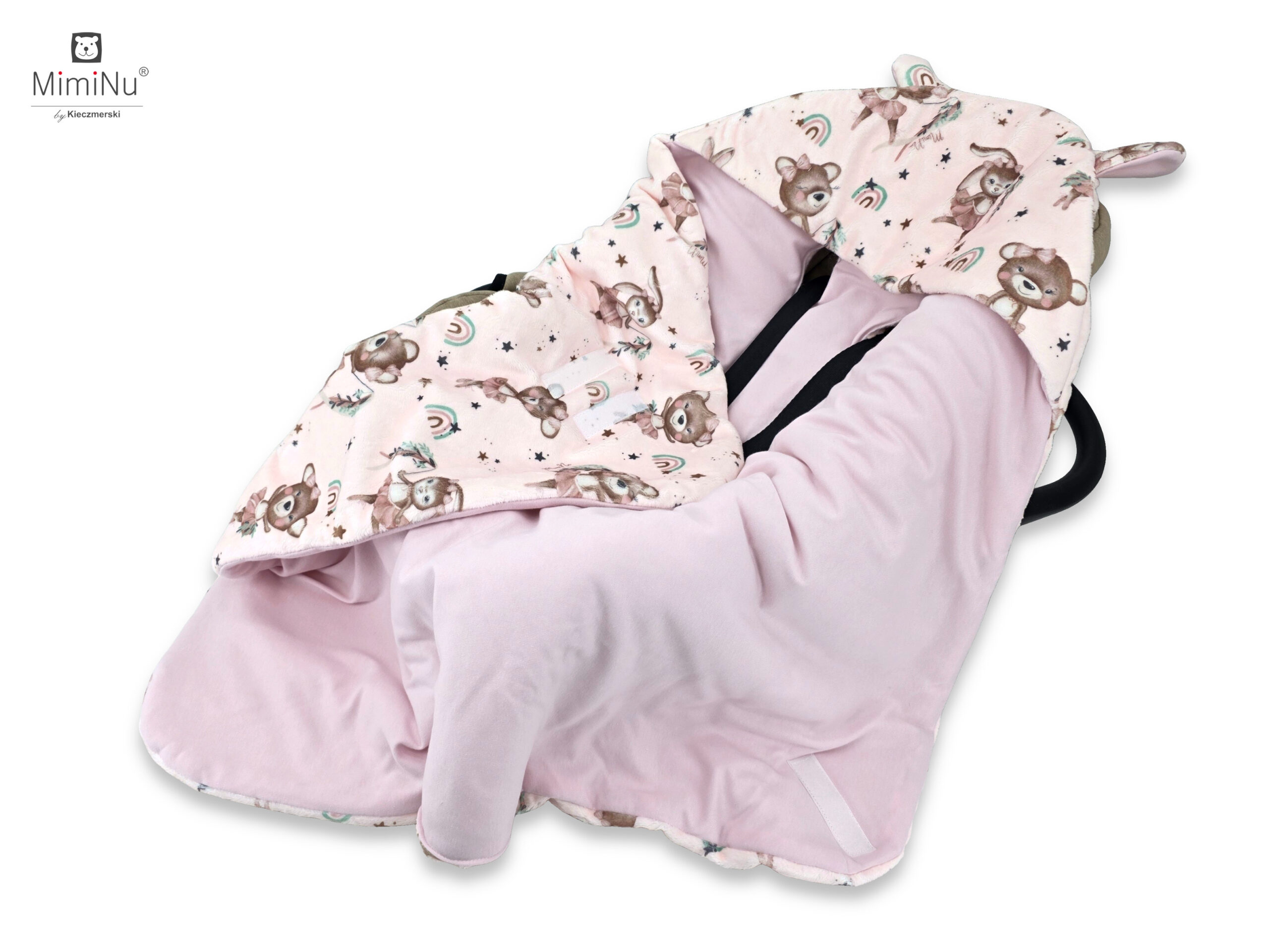 NEW MINKY GŁADKIE + INTERLOCK - OTULAK/KOCYK OCIEPLANY DO WÓZKA, FOTELIKA SAMOCHODOWEGO Z KAPTURKIEM
