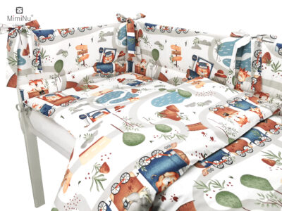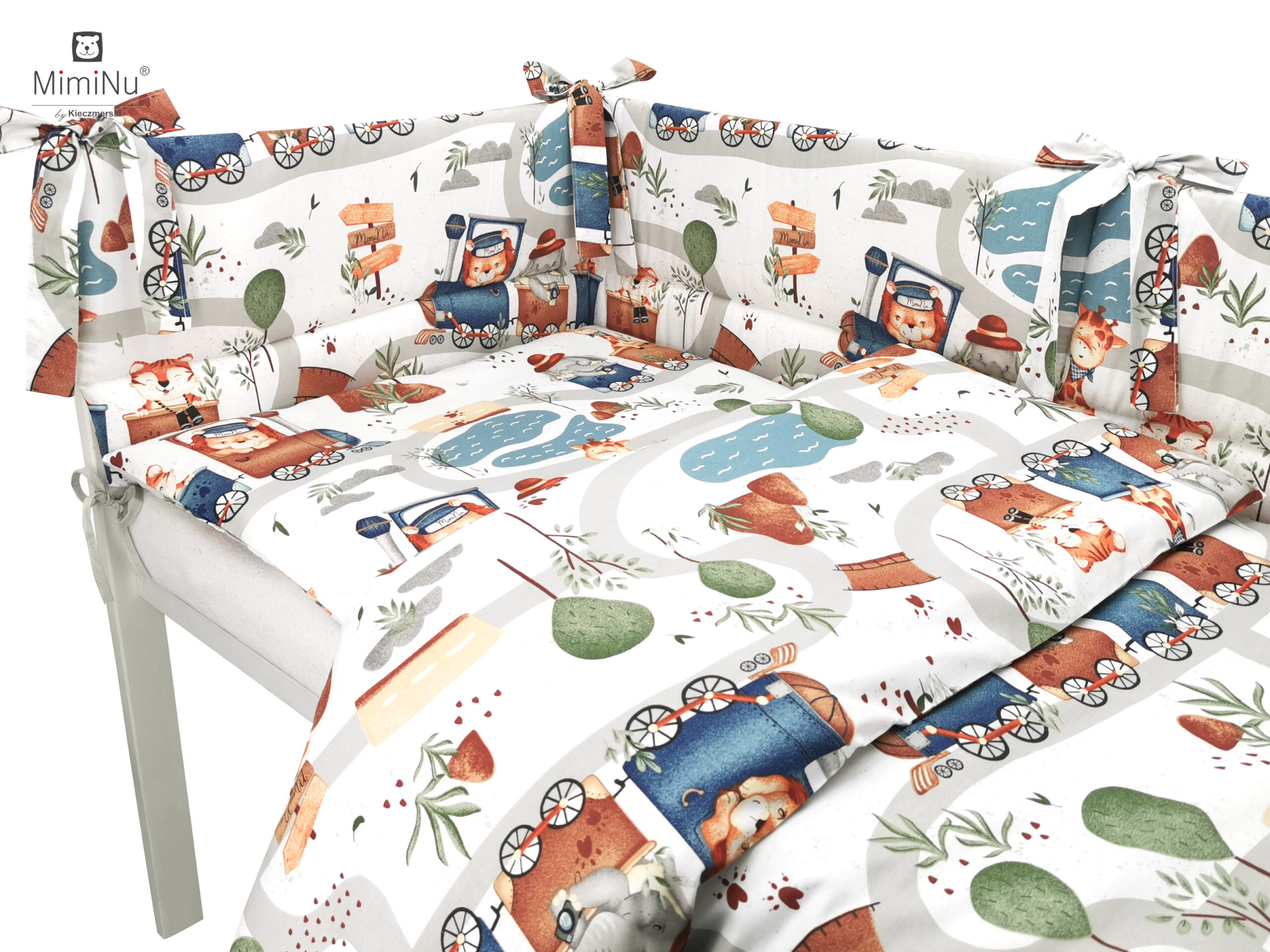 COT BEDDING COTTON MIMINU DESIGN - ZOO IN TRAIN