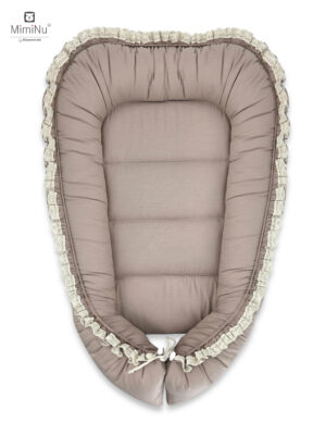 KOKON NIEMOWLĘCY KOLEKCJA PREMIUN FALBANKĄ I KORONKĄ - BAWEŁNA 100% - MOKKA