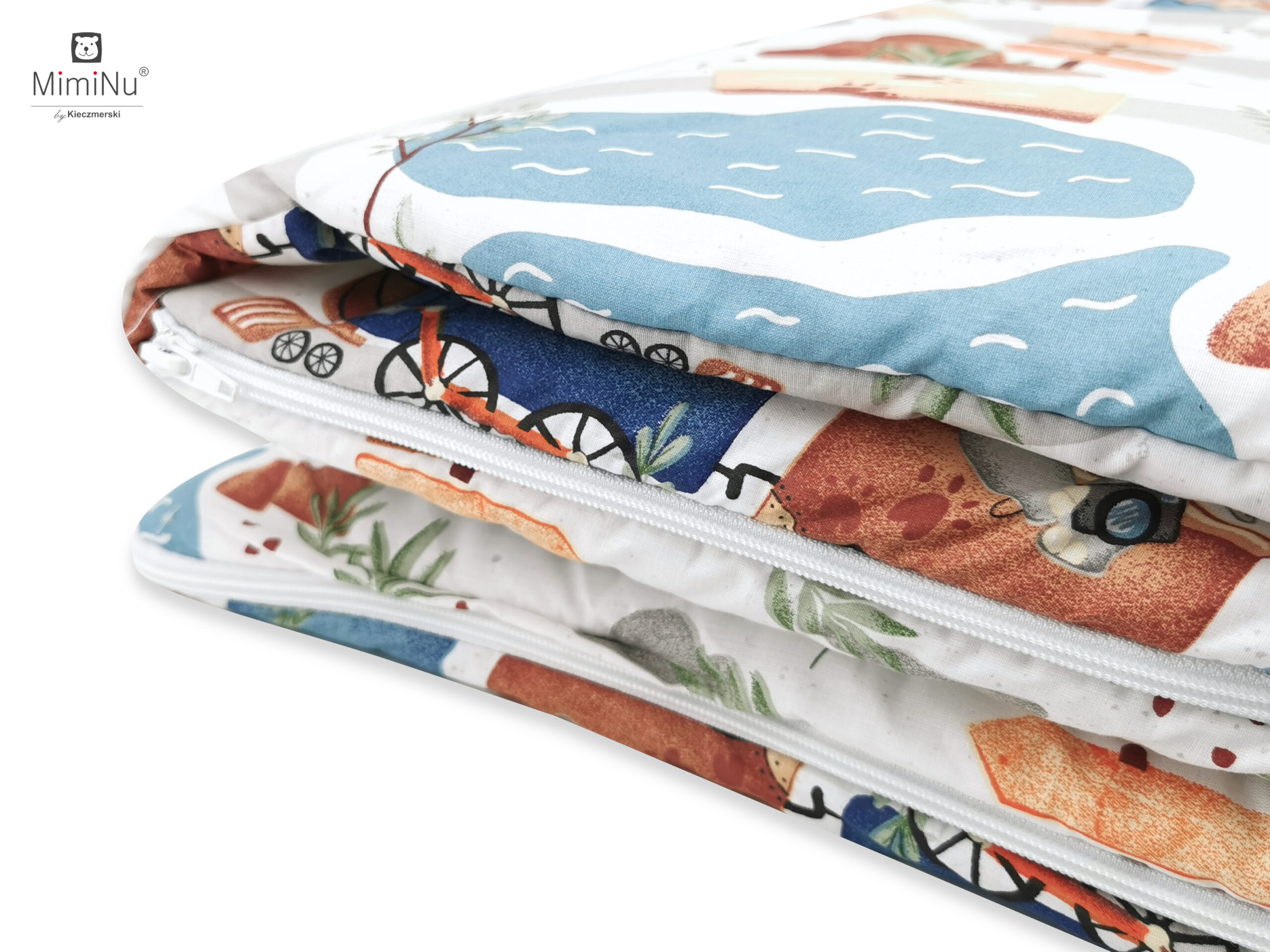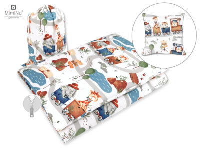 MIMINU DESIGN ZOO W POCIĄGU - ŚPIWOREK OD NIEMOWLAKA DO PRZEDSZKOLAKA Z PODUSZECZKĄ BAWEŁNA 100%