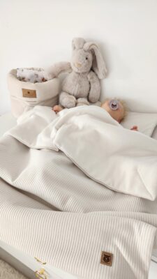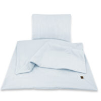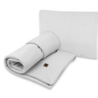 Komplet 2-elementowej pościeli z letnim wypełnieniem wykonany z dzianiny bawełnianej INTERLOCK, w skład której wchodzą: kołderka i poduszeczka (bez suwaków). Komplet jest przepikowany na rogach, wypełnienie dzięki temu nie przesuwa się podczas użytkowania. Komplet idealny do łóżeczka, bez ubierania poszewek. Doskonale sprawdzi się również do wózka, na pikniku czy do zabaw w ogrodzie. Lekkie i miękkie wypełnienie antyalergiczne, które dorównuje miękkością naturalnemu puchowi oraz dobrze przepuszcza powietrze, zapewnia wyjątkowy komfort snu. Przeciwdziała osadzaniu się roztoczy i kurzu. Zapobiega przegrzaniu.
