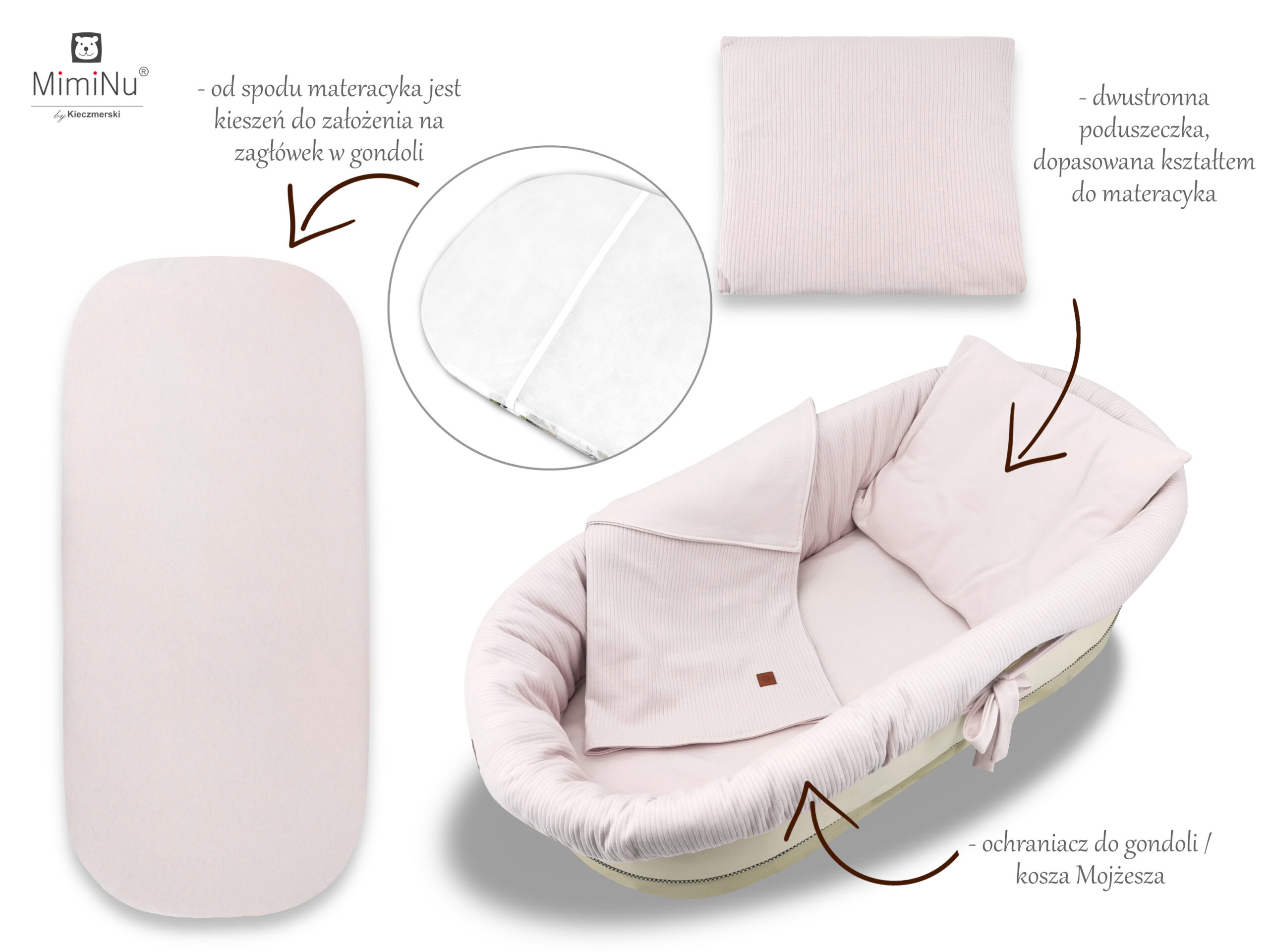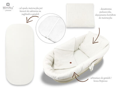 MimiNu Soft - Zestaw: ochraniacz, materacyk, poduszeczka do gondoli / kosza Mojżesza - bawełna 100%