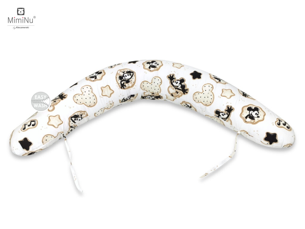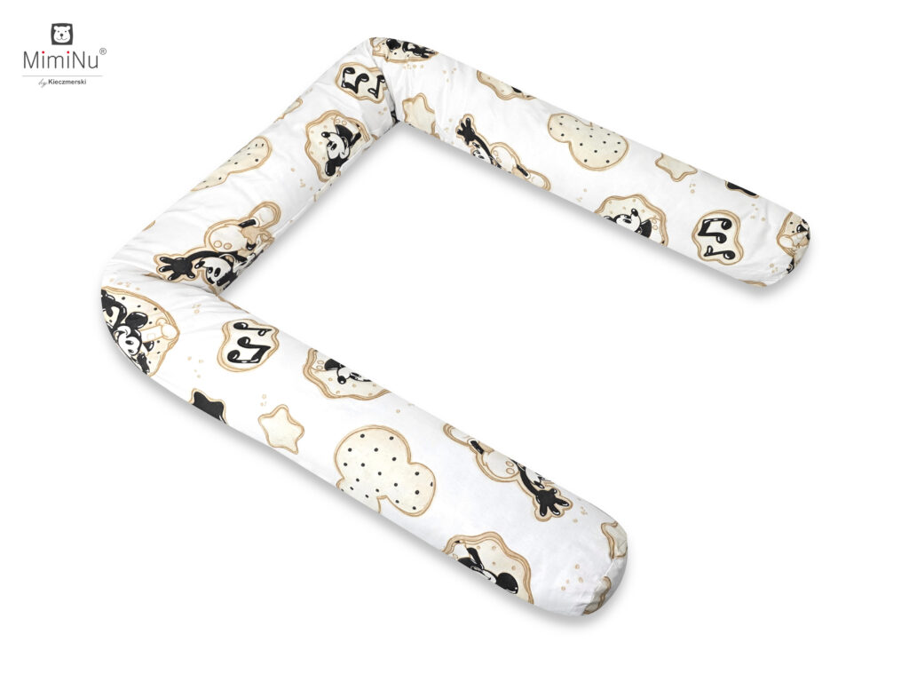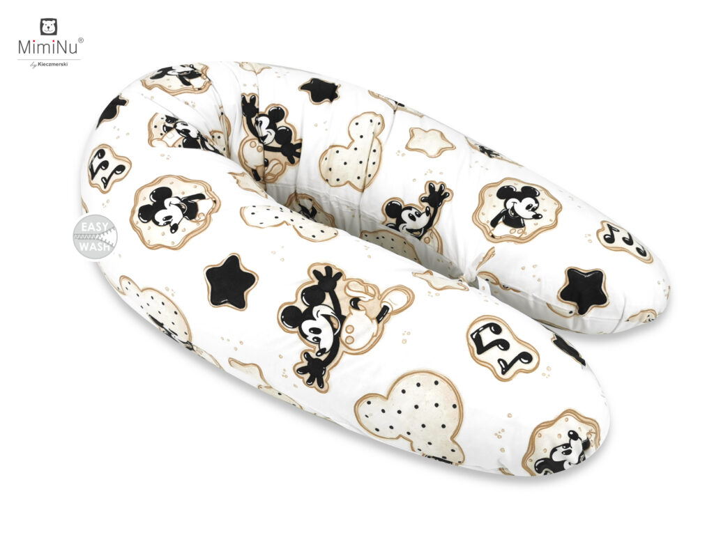 Odkryj wyjątkowy komplet pościeli, który łączy w sobie miękkość naturalnej bawełny z ponadczasową magią ulubionego bohatera dzieci – Myszki Miki. Delikatne, jasne tło ozdobione jest uroczymi grafikami przedstawiającymi Myszkę w różnych zabawnych pozach, otoczonymi dekoracyjnymi rameczkami przypominającymi słodkie ciasteczka. Wzór uzupełniają sympatyczne gwiazdki, nutki, tworząc harmonijną i radosną całość.