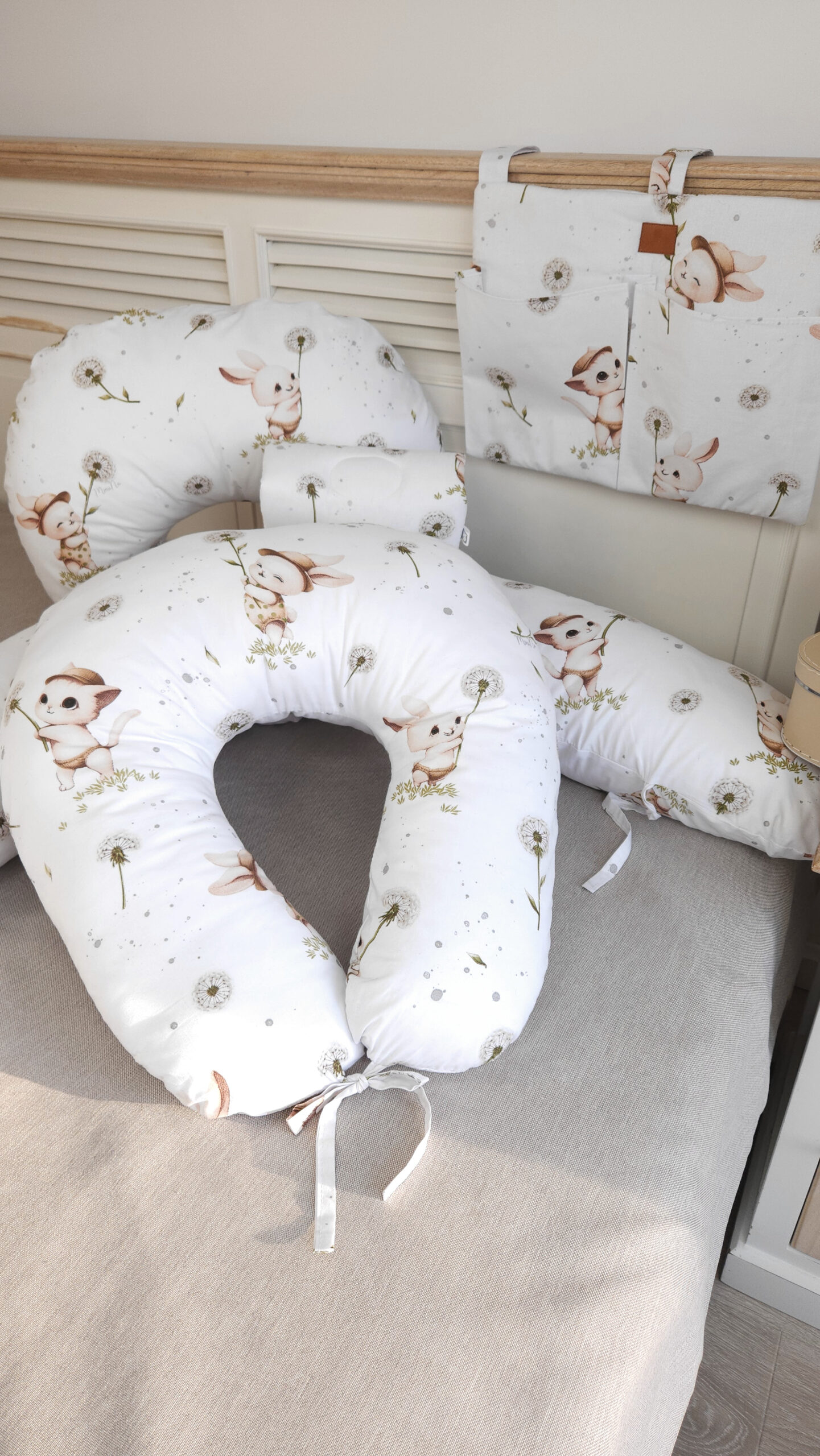 Przybornik niemowlęcy do kołyski i do łóżeczka, wiązany na ozdobne kokardy - BAWEŁNA 100%