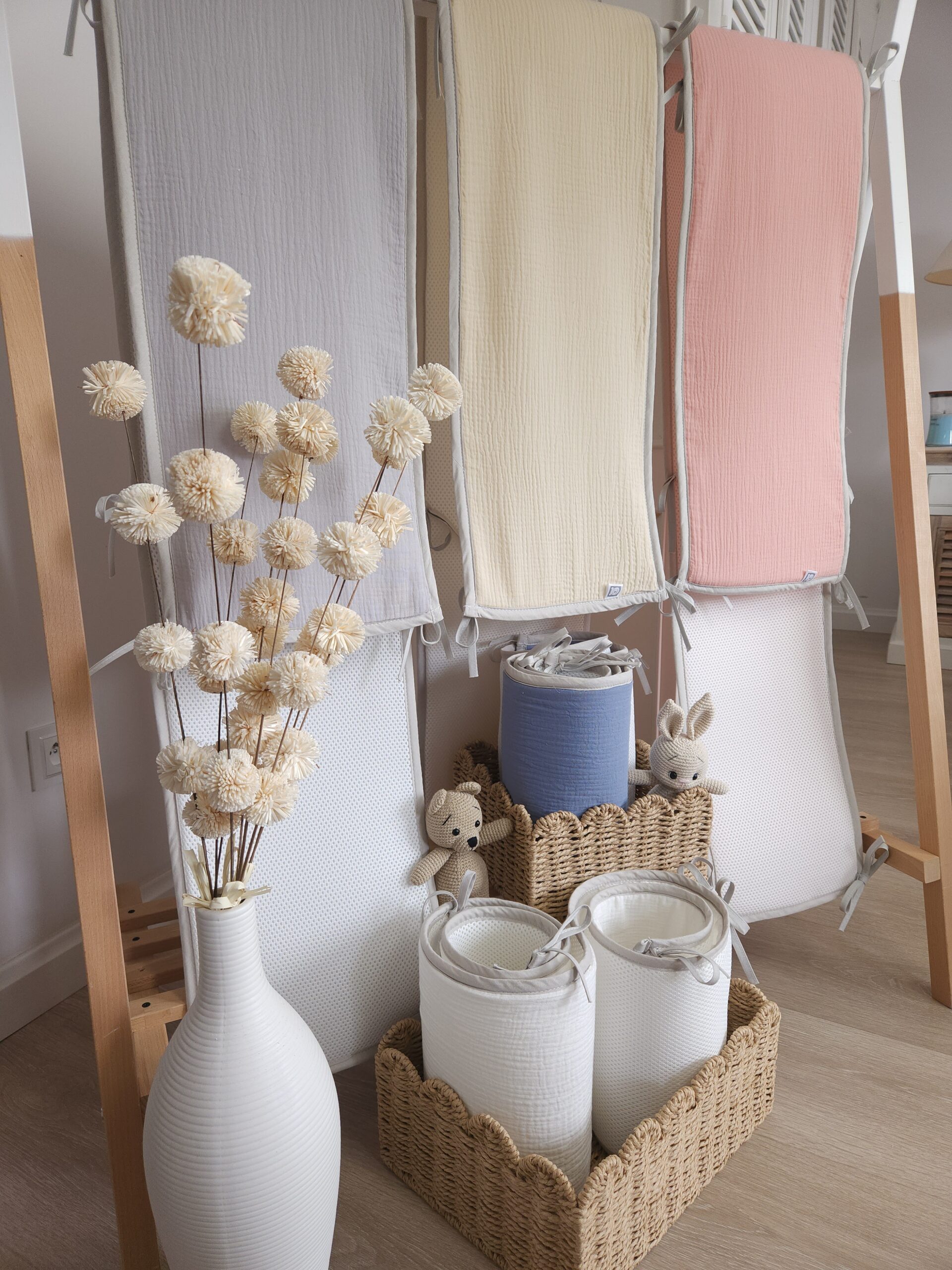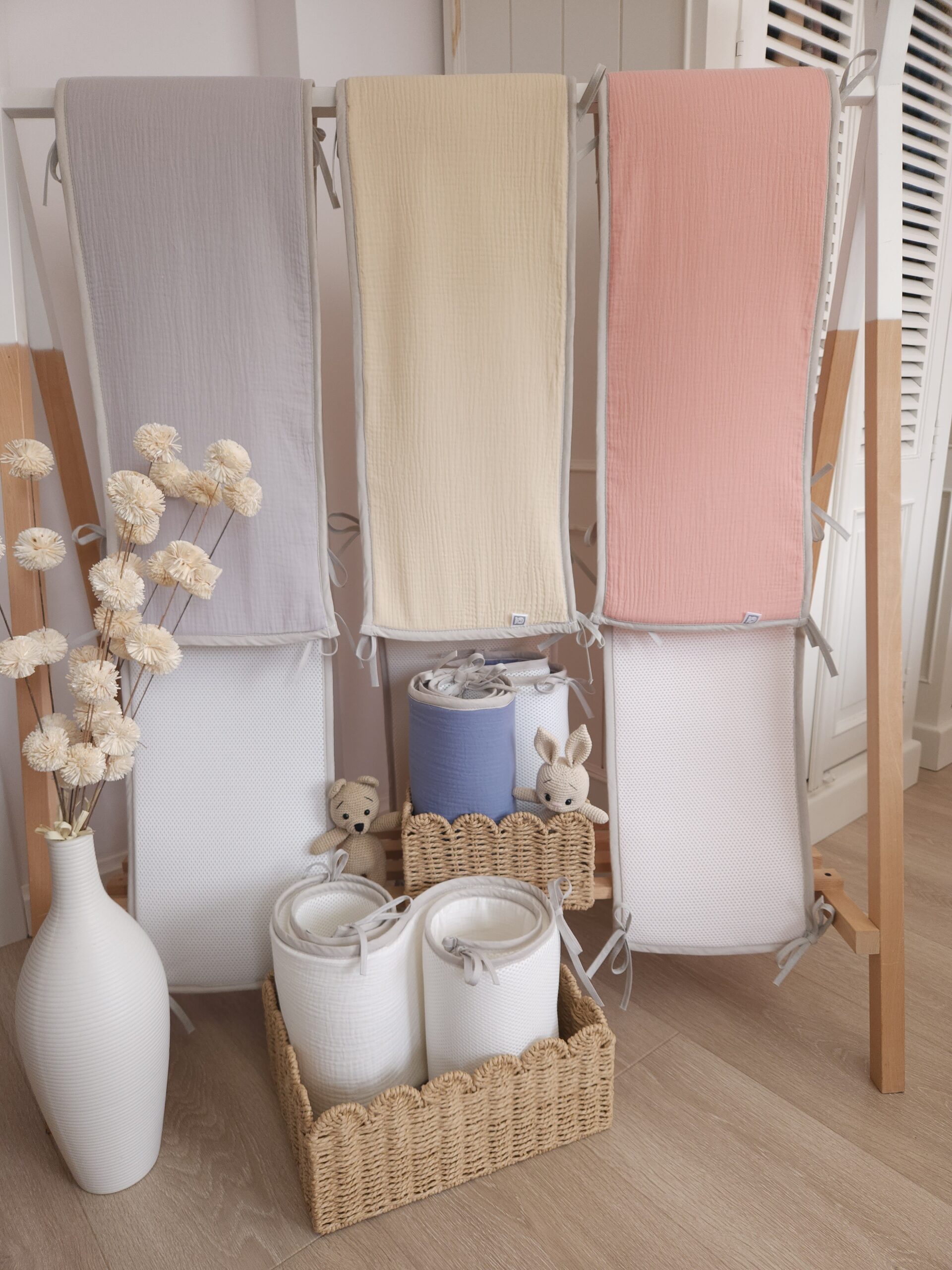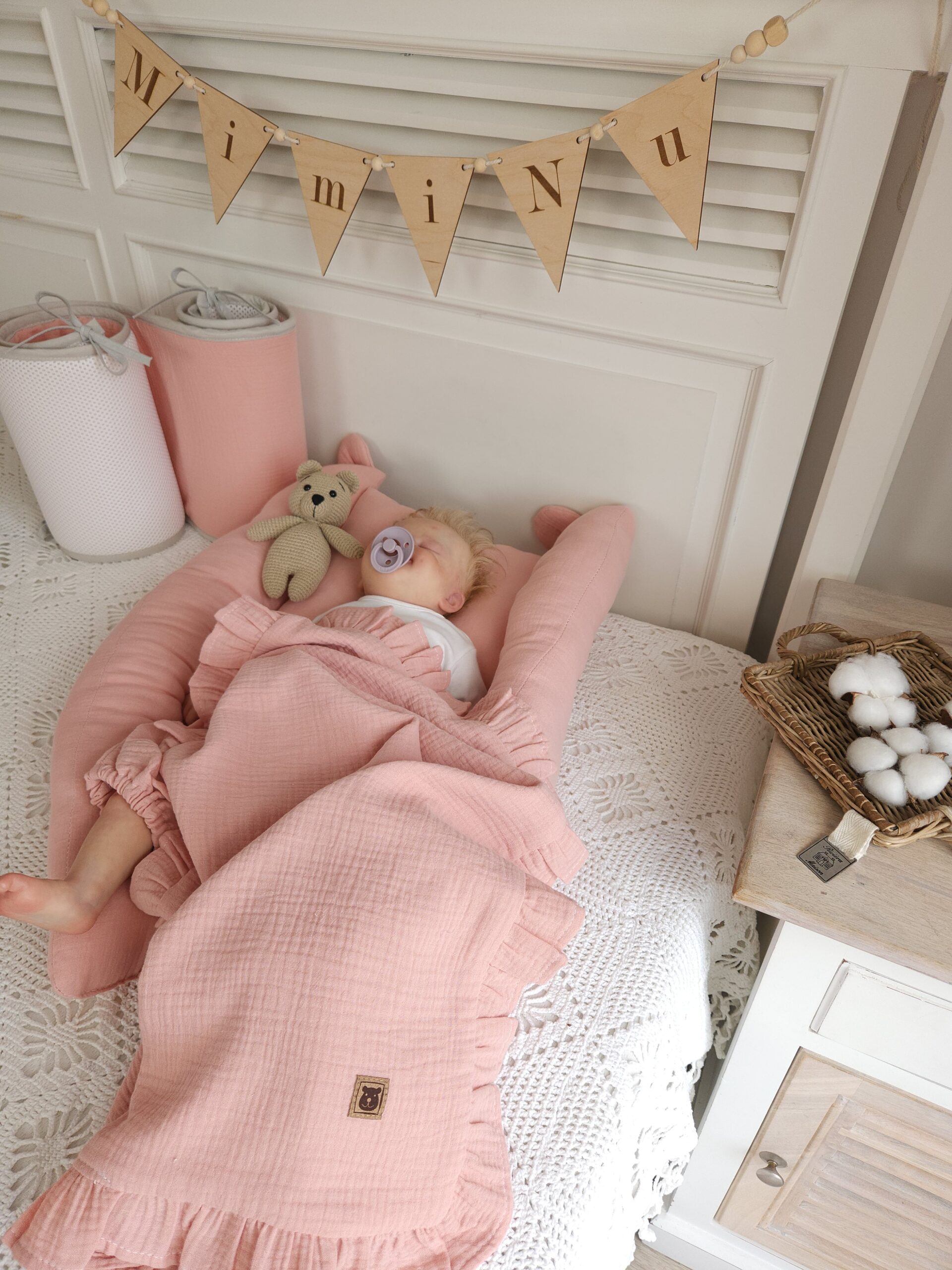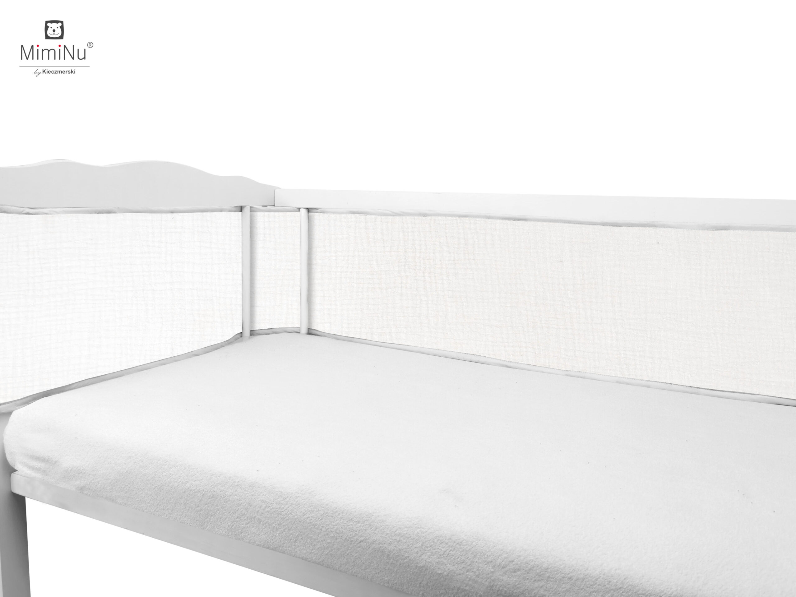 Ochraniacz Oddychający wykonany z mięciutkiej siateczki i naturalnej tkaniny bawełnianej - muślin bawełniany.