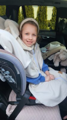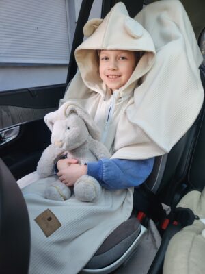 Lekkie ponczo samochodowe MimiNu to Bezpieczeństwo i Komfort podczas podróży w foteliku samochodowym.