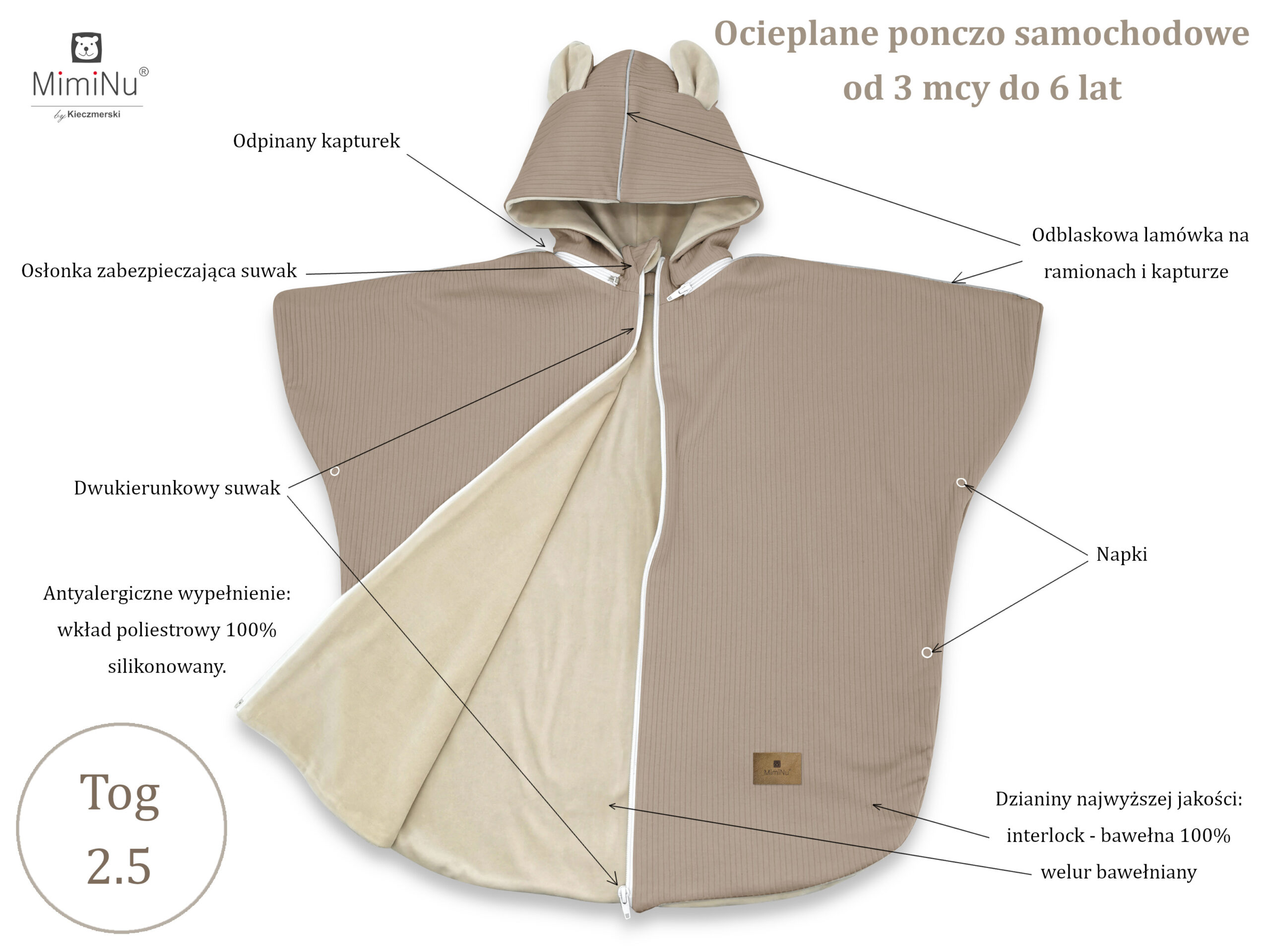 - ponczo samochodowe MimiNu jest lekkie, wygodne i stylowe zaprojektowane z myślą o maksymalnym komforcie i bezpieczeństwie Twojego dziecka