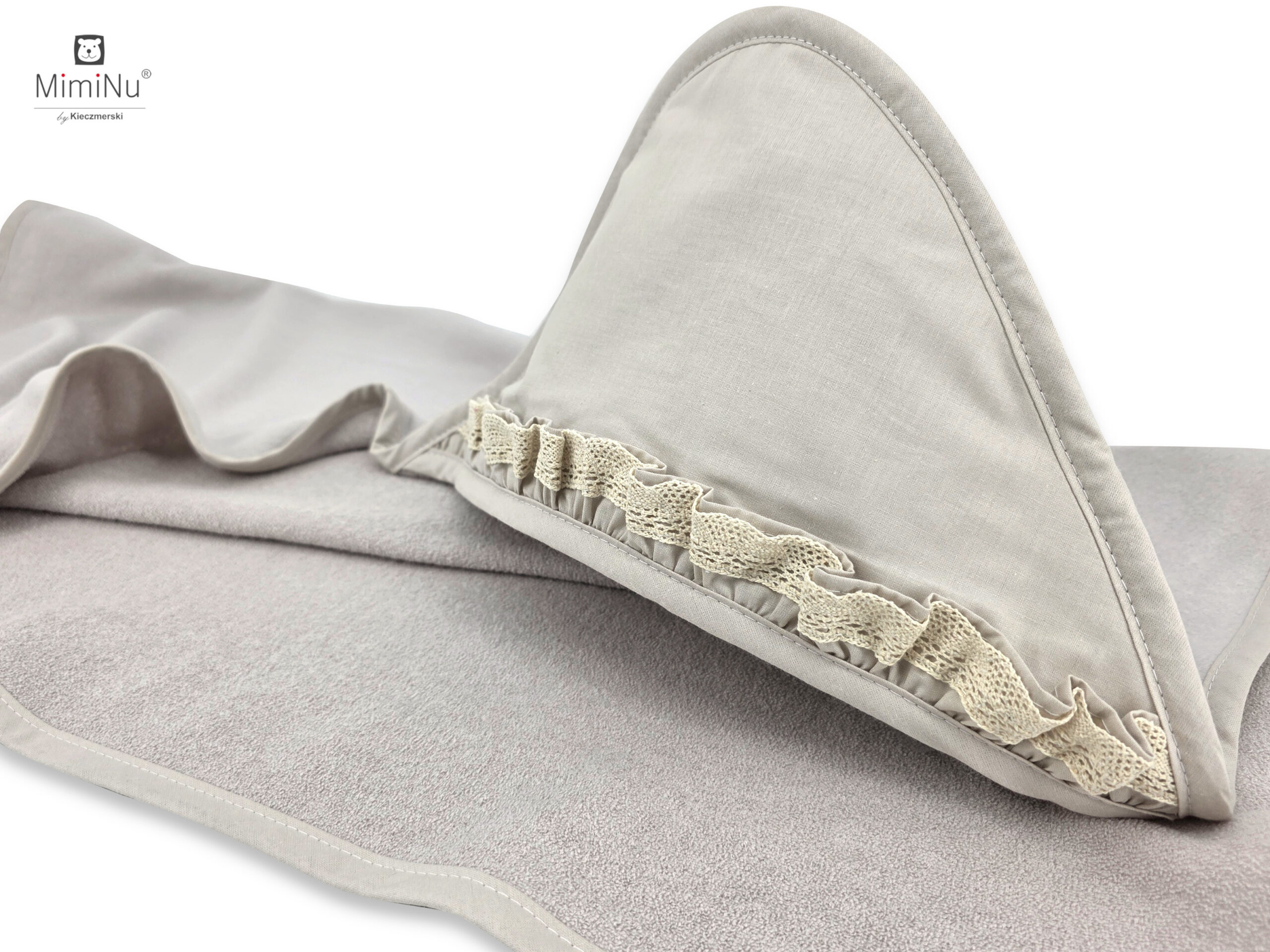 Okrycie kąpielowe termofrotte + bawełna, z ozdobną falbanką i koronką