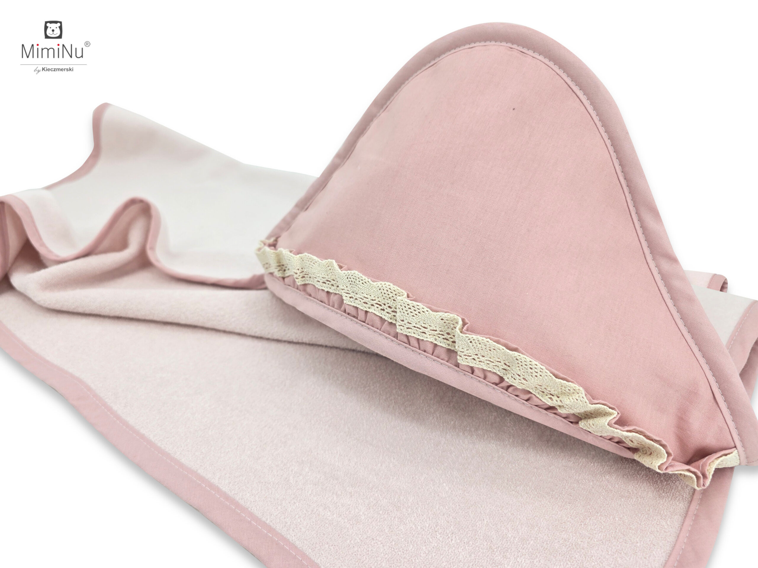Okrycie kąpielowe z ozdobną falbanką i koronką, wykonane z mięsistej termofrotki o strukturze ręcznika, w rozmiarze 100x100. Okrycie połączoną z bawełną najwyższej jakości, w 100% naturalnej. Dzięki wysokiej jakości materiałowi, okrycie jest chłonne, delikatne i szybko schnie, zapewniając maluchowi komfort i ciepło po kąpieli.