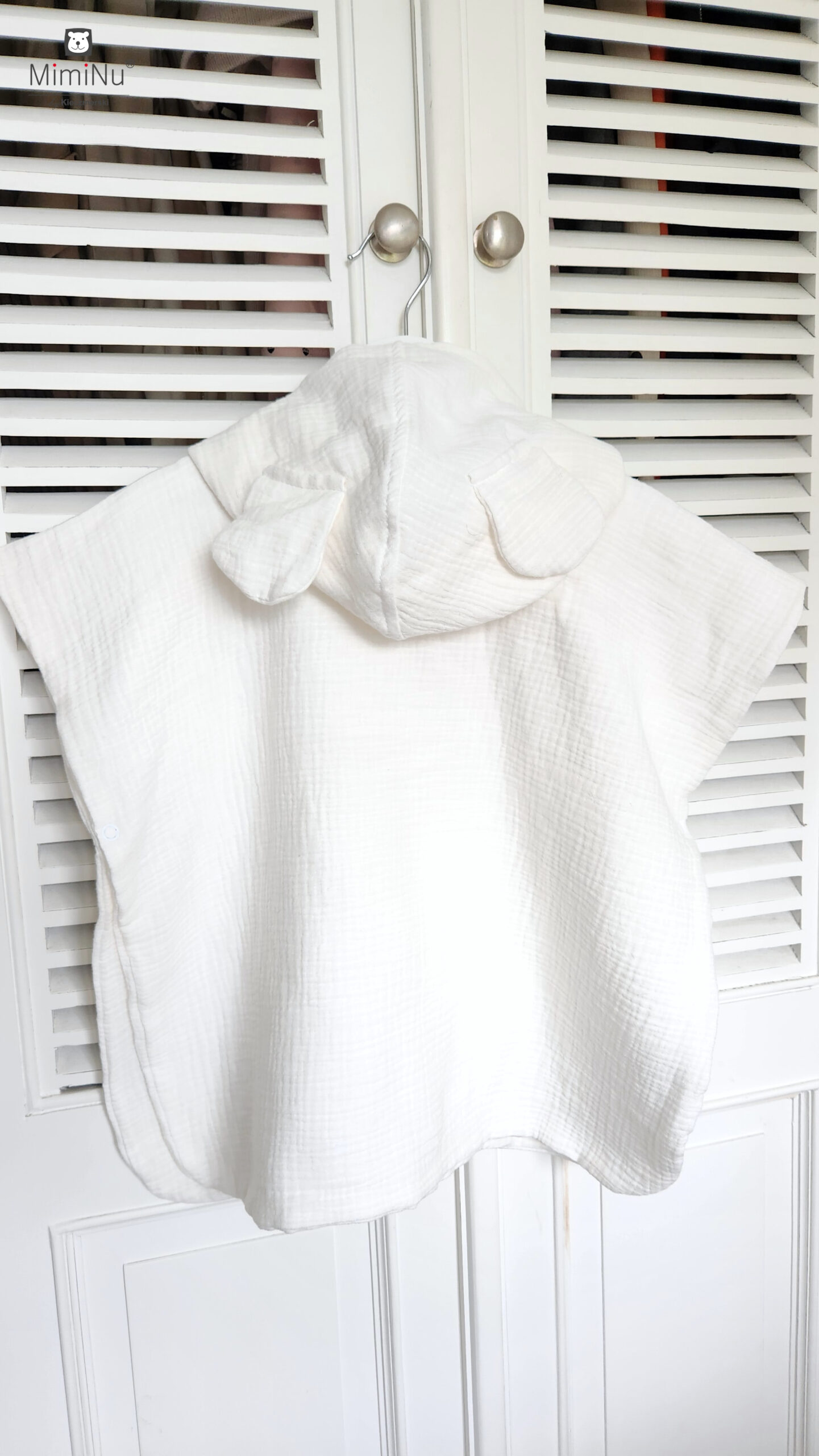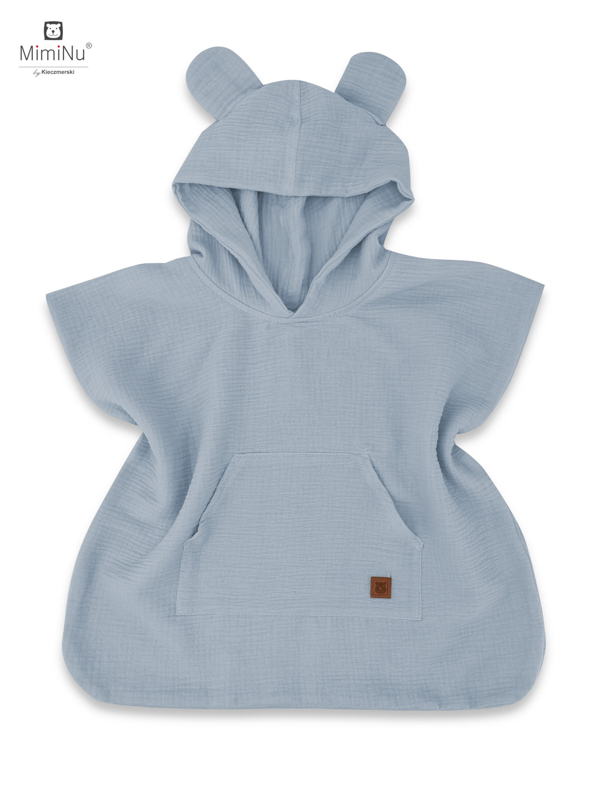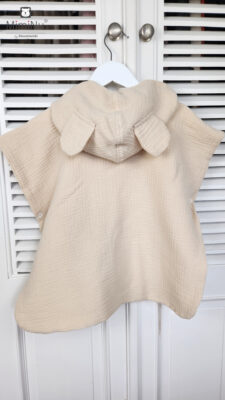 Ponczo dla dzieci MimiNu. Od 3 miesiąca zycia służy jako okrycie plażowe. Wygodne ponczo z miękkiej, leciutkiej, szybkoschnącej tkaniny muślin bawełniany, podwójna gaza.