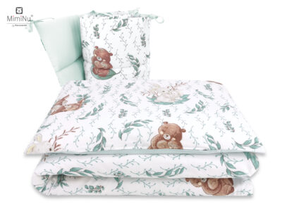 Komplet pościeli do łóżeczka dziecięcego z tkaniny bawełnianej, wyprodukowanej w polskich fabrykach. Wyjątkowa miękkość bawełny sprzyja relaksowi i umila sen dziecku. Stonowane wzornictwo i kolorystyka sprawiają, że pościel jest niezwykle subtelna i elegancka. Doskonale dopełni wystrój wnętrza dziecięcego pokoiku.
