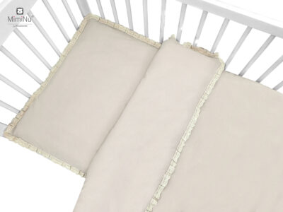 Pościel z najnowszej kolekcji z falbanką i koronką. Idealna, Subtelna. Wpasuje się w gusta każdego, najbardziej wymagającego rodzica.