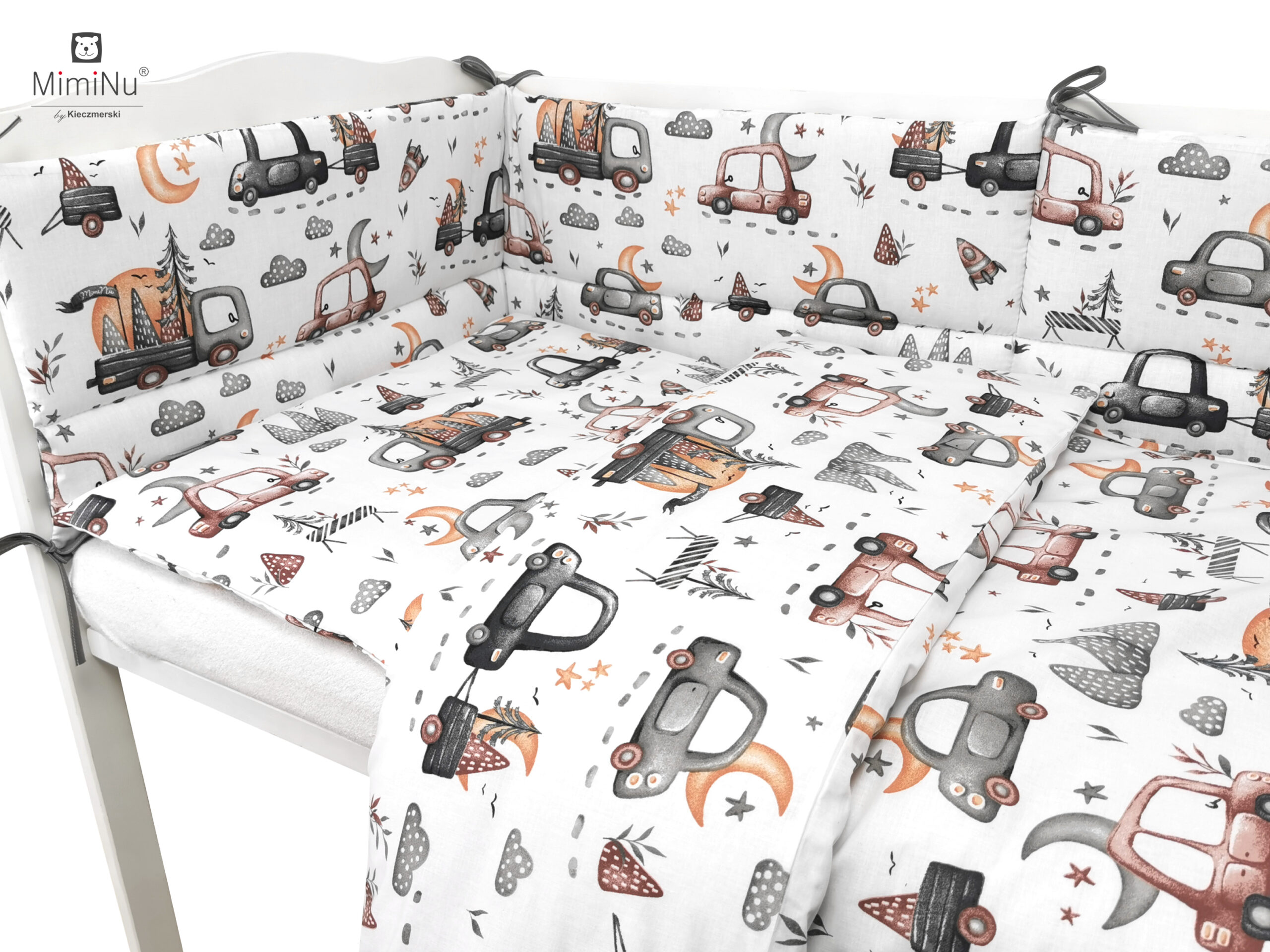 SAMOCHODZIKI SZARE - POŚCIEL MIMINU DESIGN BAWEŁNA 100%