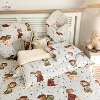 Śpiworek jest uszyty z 2 warstw bawełny, dzięki temu zarówno z zewnątrz jak i w środku jest miękka, delikatna i bardzo wytrzymała, w pełni naturalna tkanina. Pomiędzy warstwy bawełny został dodany antyalergiczny wkład poliestrowy, który jest przewiewny i porównywalnie miękki jak naturalne pierze. Jest leciutki i zapewnia idealną cyrkulację powietrza. Idealnie nadaje się do użytkowania przez cały rok.